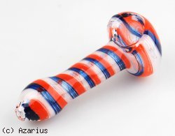 These beautiful hand blown glass pipes are a real collector's item. Each pipe is individually made and is one of a kind. This one is colored with beautiful orange and blue stripes. Size 8.5 cm.