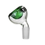 This quality glass slide bowl from Black Leaf is designed for smoking concentrates with and regular bong with a 14.5mm joint or adapter! Unlike a regular bong bowl that would have an opening at the bottom of the bowl, this hot hit bowl features six inlet holes along the inside of the rim. When you place your oil or hash in the bottom of the bowl and use a glass wand to heat it, the vaporized material will be sucked down into your bong's chamber in a potent six-jet stream! Made of clear glass outside with a green glass inner bowl and an angled 45 degree stem, this piece features Black Leaf's OIL logo and makes an easy alternative to a vapor dome, nail and adapter concentrate smoking set-up.