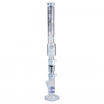 A great way to kick off your Mix and Match bong kit collection or buy a variety of building blocks in one go, this complete kit from Blaze Glass includes a 5mm-thick stemless base with two blue glass disc diffuser plates, a 45mm > 45mm bong extender with a slitted and reinforced 6-arm tree perc in clear and black glass, and a 12-arm tree perc tube, with ice notches and a thick, comfortable glass mouthpiece. All together this massive bong stands over 2.5 feet tall! The base features a reinforced 18.8mm ground joint and comes equipped with a roomy 18.8mm glass slide bowl. Two 45mm stainless steel bong joint clips are included to keep the pieces of your bong kit held securely together, and these pieces are interchangeable with the other bong bases, extenders and tubes in the Blaze Glass Mix and Match Bong Kit, or any mix and match set that fits together with a 45mm joint! The Blaze Glass logo is emblazoned on each piece in the kit in high-gloss silver. With your own Blaze Glass Mix and Match Bong Kit, you'll not only get dreamy smooth, bubbly bong hits, you'll get endless possibilities for build-your-own-bong fun!