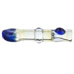 Glass Taster Pipe - Fumed with Flat Mouthpiece and Color Marble - Blue
