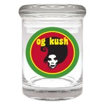 One of Cannaline's Top Strains series, this glass stash jar features the name of the popular favorite marijuana strain, OG Kush, and a color image printed on the front. This glass jar is made of quality borosilcate glass and holds about an eighth of an ounce of herb. The lid fits tightly to keep your stash fresh and aromatic. Cannaline is a major provider of glass stash jars to the medical marijuana industry, helping to maintain the medicine's freshness and potency, and this glass jar is perfect for anyone who wants to keep their pot stash mouth-wateringly fragrant!