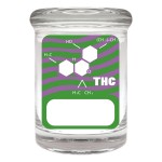 From Cannaline's Writables series, this glass stash jar features a green and purple color label printed on the front with the molecular structure of THC, along with a white label area that can endlessly wiped clean and written on again whenever you have a different strain of cannabis to store. Made of quality borosilcate glass, this stash jar holds about an eighth of an ounce of herb, and the lid fits tightly to keep your stash fresh and aromatic. Cannaline is a major provider of glass stash jars to the medical marijuana industry, helping to maintain the medicine's freshness and potency, and this glass jar is perfect for anyone who wants to keep their pot stash mouth-wateringly fragrant!
