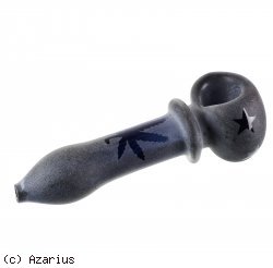 This hand-blown black tinted glass pipe is decorated with stars and a beautiful cannabis leaf. The extra hole in the pipe's head let's you control the air supply - allowing for massive puffs.